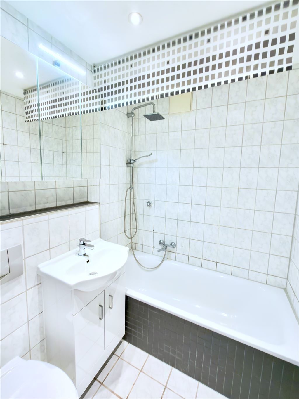 Die Fotos des Badezimmers und WCs zeigen noch den letzten, bewohnten Zustand. Seit Mitte Januar 2026 ist die Wohnung frei.