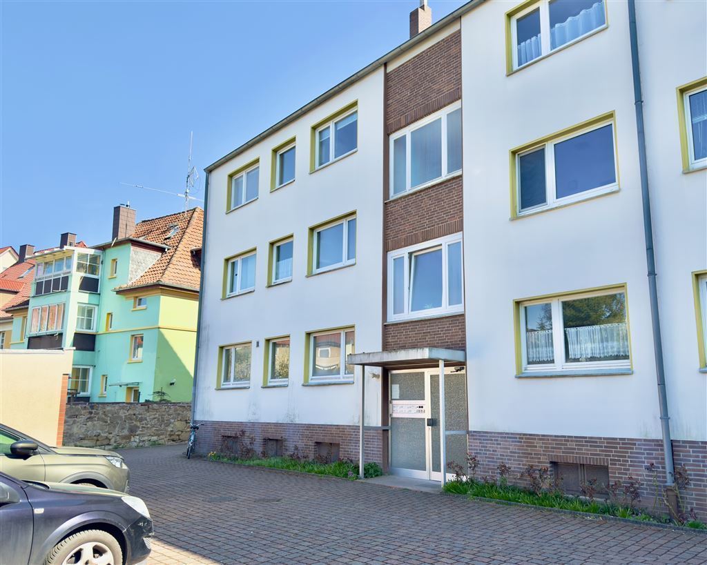 Gepflegte, gut aufgeteilte Wohnung im 2. Obergeschoss eines unweit der Innenstadt gelegenen Sechsfamilienhauses. Sie verfügt über 3 Zimmer, eine Küche, ein Bad sowie ein separates WC, einen praktischen Abstellraum und einen sonnigen Balkon. Ein großer Kellerraum gehört ebenfalls zu der Wohnung - ebenso auch ein PKW-Stellplatz im Hof. Außerdem steht ein Fahrradkeller mit Außentreppe zur gemeinschaftlichen Nutzung zur Verfügung.