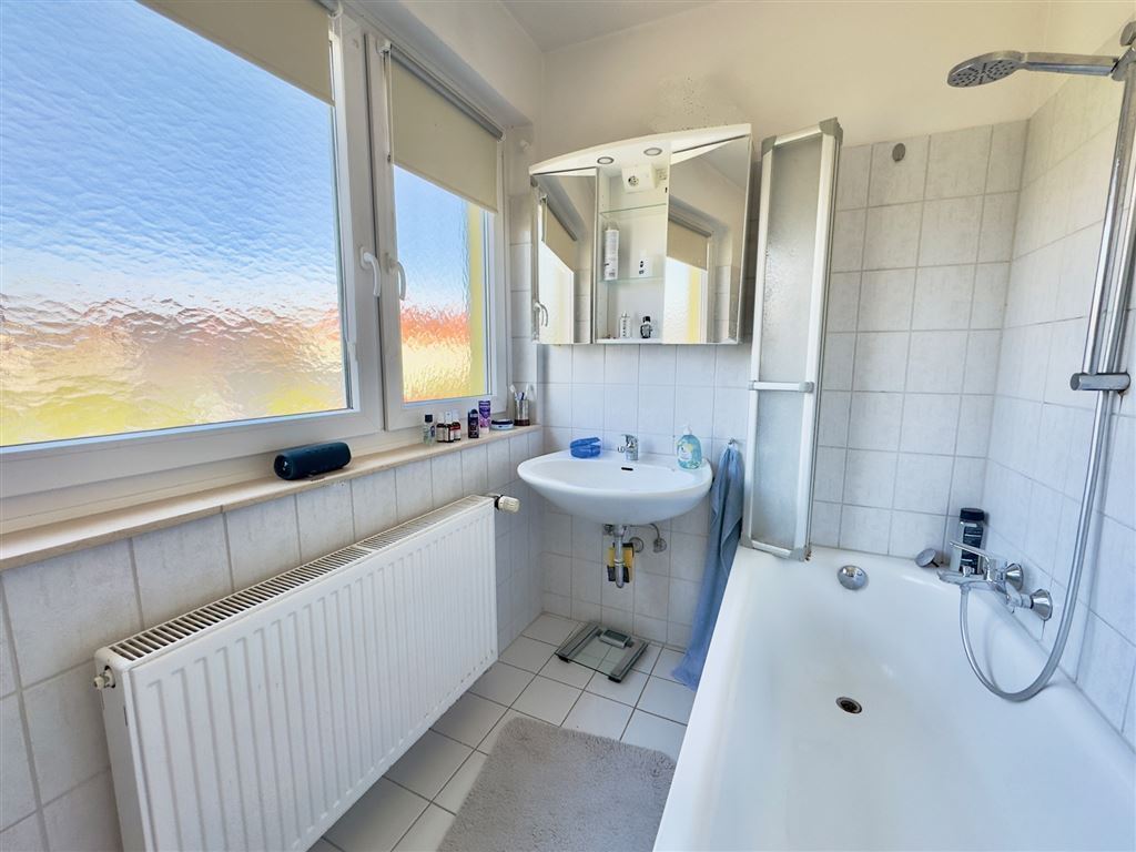 Ordentliche, renovierte Ausstattung, unter anderem eine neuwertige Etagenheizung (2020), Isolierglasfenster, Laminatböden, eine moderne Einbauküche, ein Wannenbad mit Fenster sowie ein separates WC, eine elektrisch betriebene Balkonmarkise, ein Abstellraum in der Wohnung, ein geräumiger Kellerraum etc.